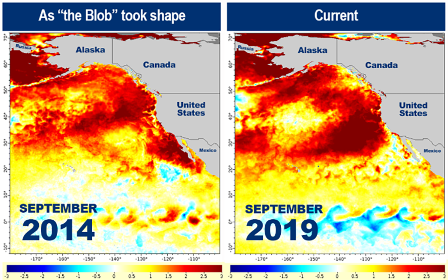 En 2014, una anomalía térmica sin precedentes —al menos desde los registros que se llevan a cabo desde 1981— se extendió desde las latitudes de la península de Baja California hasta el extremo sur de Alaska.