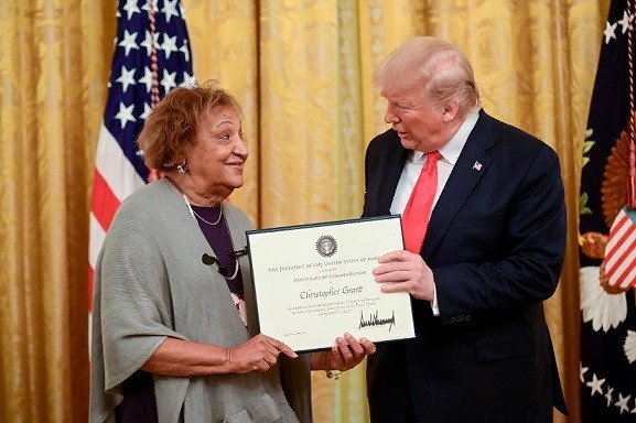 Como resultado, Gran no asistió al acto y fue reemplazado por su madre, Minnie Grant, que recibió de manos del presidente norteamericano una placa por su heroísmo. Ese día, el mandatario recordó de nuevo la supuesta hazaña del homenajeado.