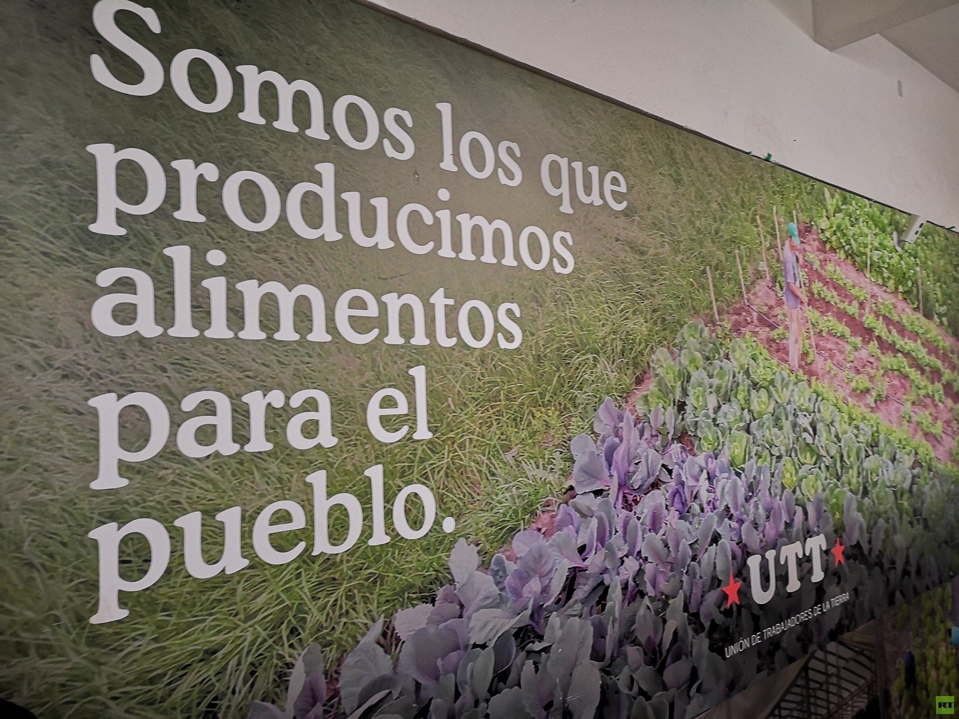 "Somos el gremio de los trabajadores de la tierra, somos una organización de masas, de miles y miles", dice Nahuel Levaggi, coordinador nacional. Lo cuenta a RT sentado en un banquito mientras toma mate y come una pizza hecha por y para los compañeros y compañeras. Estamos en el Almacén de la UTT del barrio de Almagro, en Ciudad de Buenos Aires. A unos metros, pilas de cajones con verduras, huevos envueltos en papel de diario y yerba de una cooperativa del interior esperan clientes que llegan del barrio y de un poco más lejos también.