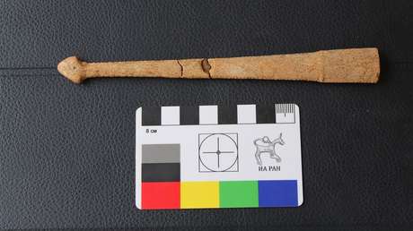 Los arqueólogos también encontraron un objeto alongado de 16 centímetros de largo con punta asimétrica decorado con ornamentos típicos de la cultura kostionki, originaria de una región más sureña. Hasta el momento no se han encontrado análogos a este objeto, que parece a una punta de hueso, pero los expertos indican que tiene rasgos parecidos a elementos de la cultura gravetiense y que se utilizaba con fines simbólicos.