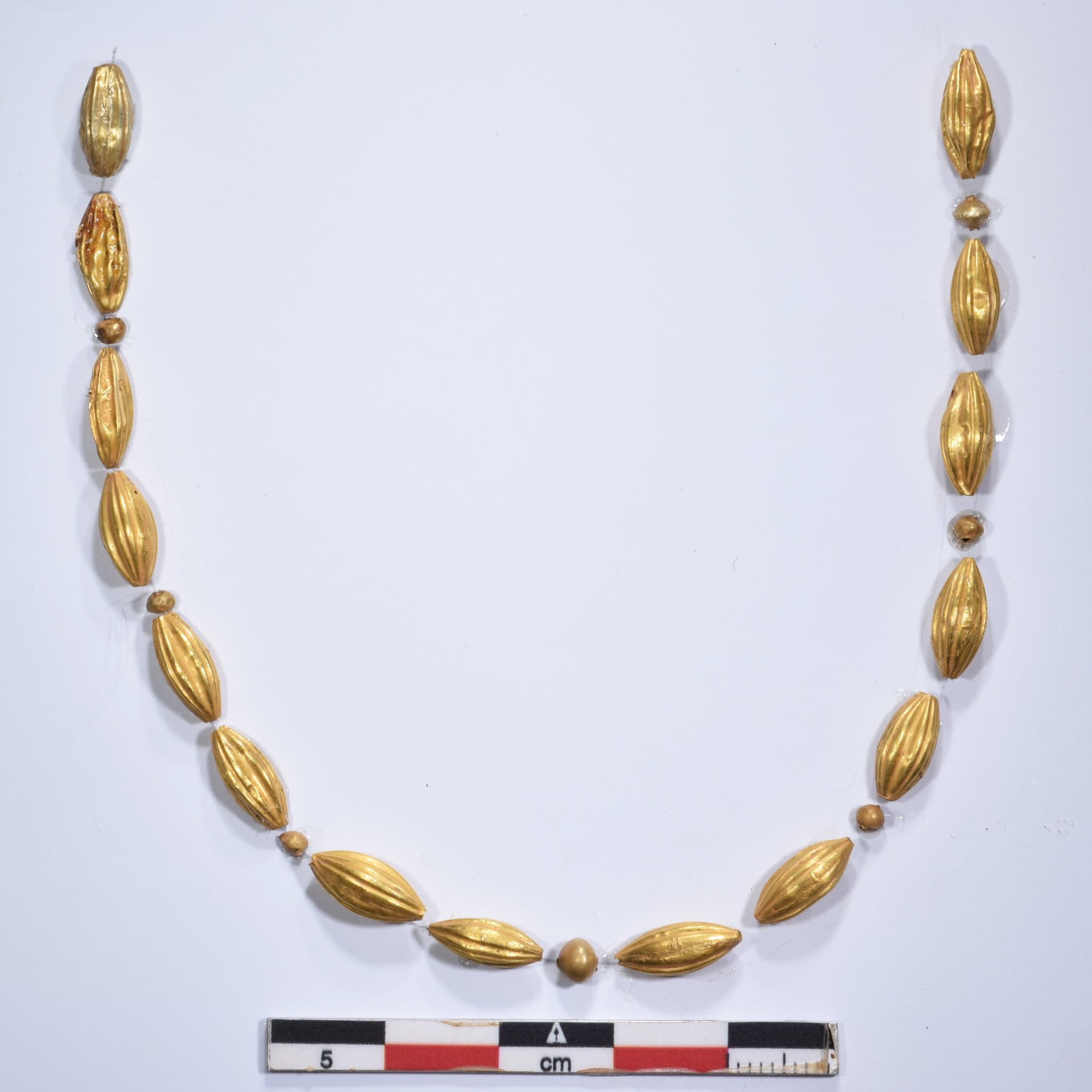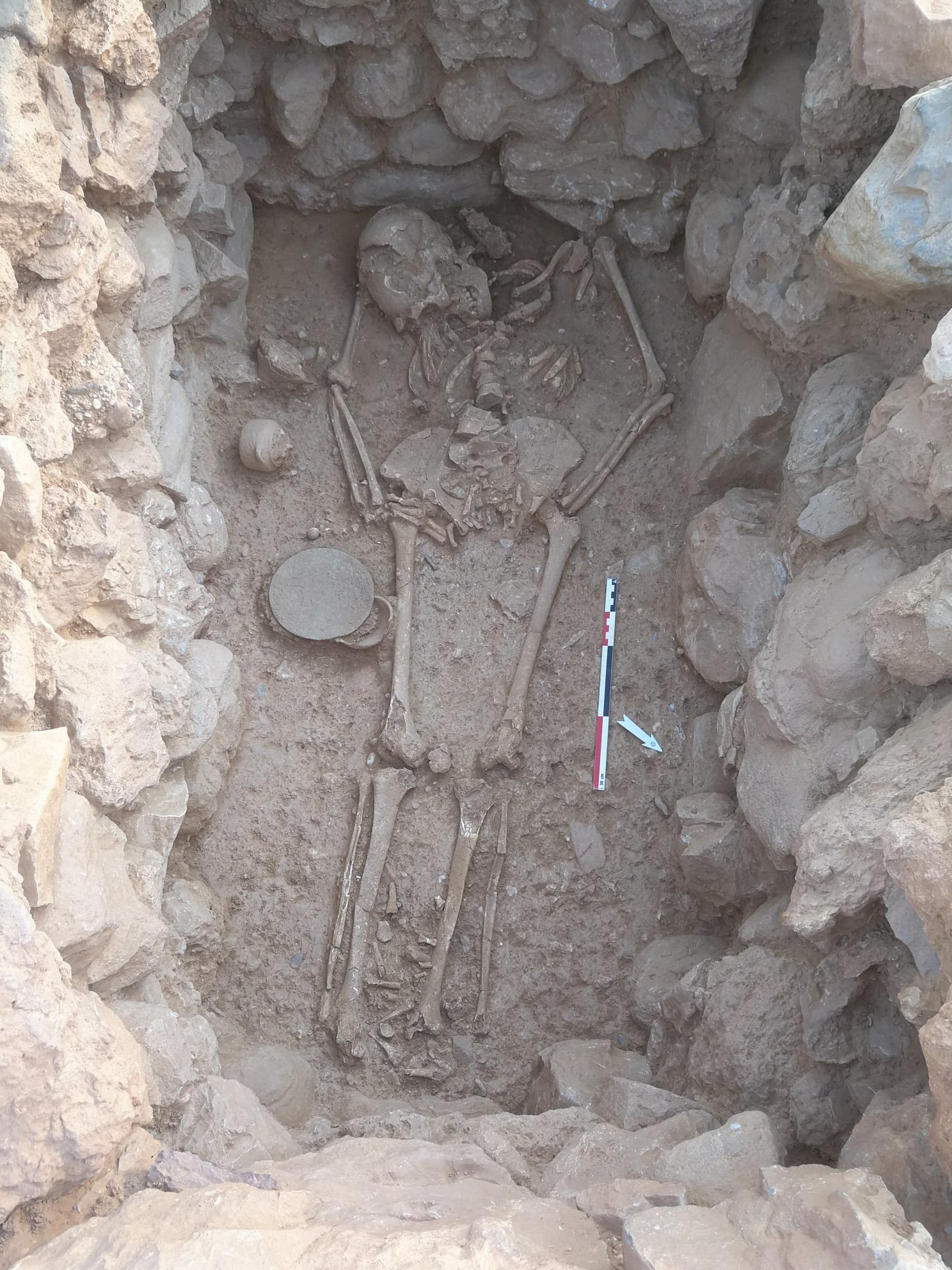El hallazgo más importante fue una cista (construcción funeraria de piedra) que contenía el esqueleto casi intacto de una mujer junto con varios objetos de valor, entre ellos un espejo de bronce con un mango de marfil, alfileres de hueso y bronce y un collar que consta de varias cuentas de oro. De acuerdo a los especialistas, los accesorios con los que había sido enterrada la mujer dan indicios de que se trataba de una persona acaudalada.