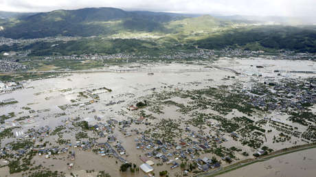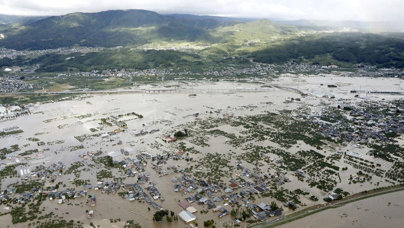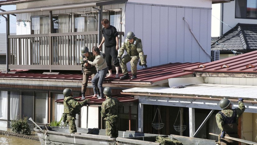 Vastas áreas residenciales en la prefectura de Nagano, al oeste de la capital, han sido inundadas por el río Chikuma. El agua podría alcanzar los cinco metros de profundidad.