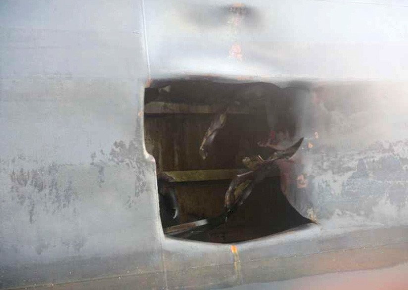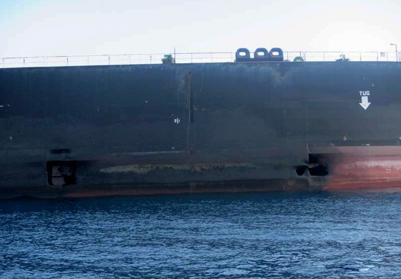 En las fotografías se distinguen los dos presuntos lugares de impacto de los misiles, justo por encima de la línea de flotación de la embarcación.