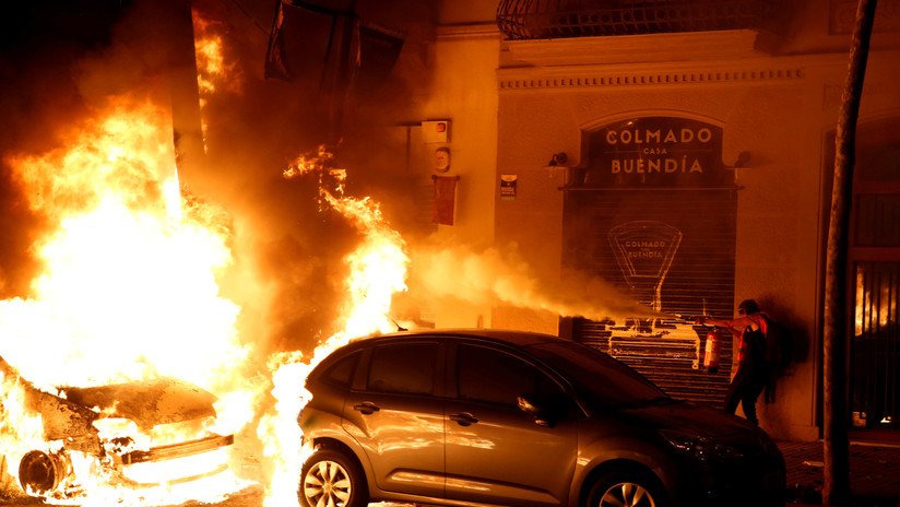 #EnDirecto | Arden barricadas a escasos metros de la Avenida Diagonal de Barcelona https://t.co/L5YnxVjNhm Estas son imágenes de hace pocos minutos en las que se ve como las llamas cortan la vía e incendian algunos vehículos pic.twitter.com/N92j2bmV0a