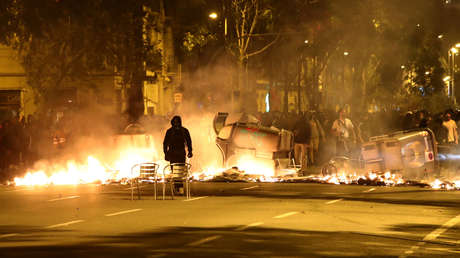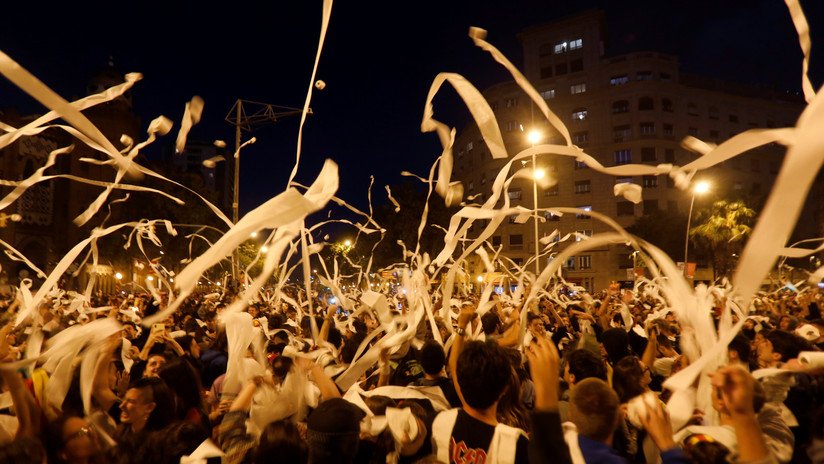 Los congregados más violentos montaron barricadas incendiarias, quemando autos y contenedores de basura, y lanzaron cócteles molotov mientras que otros lanzaron rollos de papel higiénico para manifestar su desacuerdo con la sentencia del 'procés'.