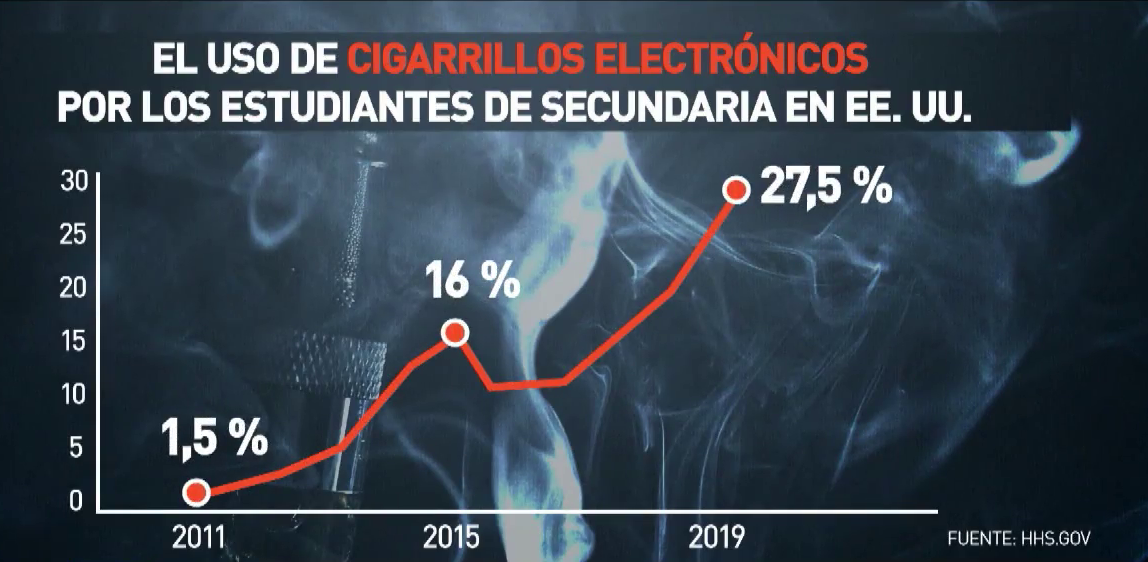 El pequeño tamaño del dispositivo, el buen sabor y la ausencia de olor a diferencia del tabaco convencional, han contribuido al rápido aumento de esta práctica entre los más jóvenes sin que padres o profesores la detectasen. La moda se ha propagado hasta un punto en que uno de cada cuatro menores estadounidenses de entre 12 y 17 años ha fumado cigarrillos electrónicos recientemente.