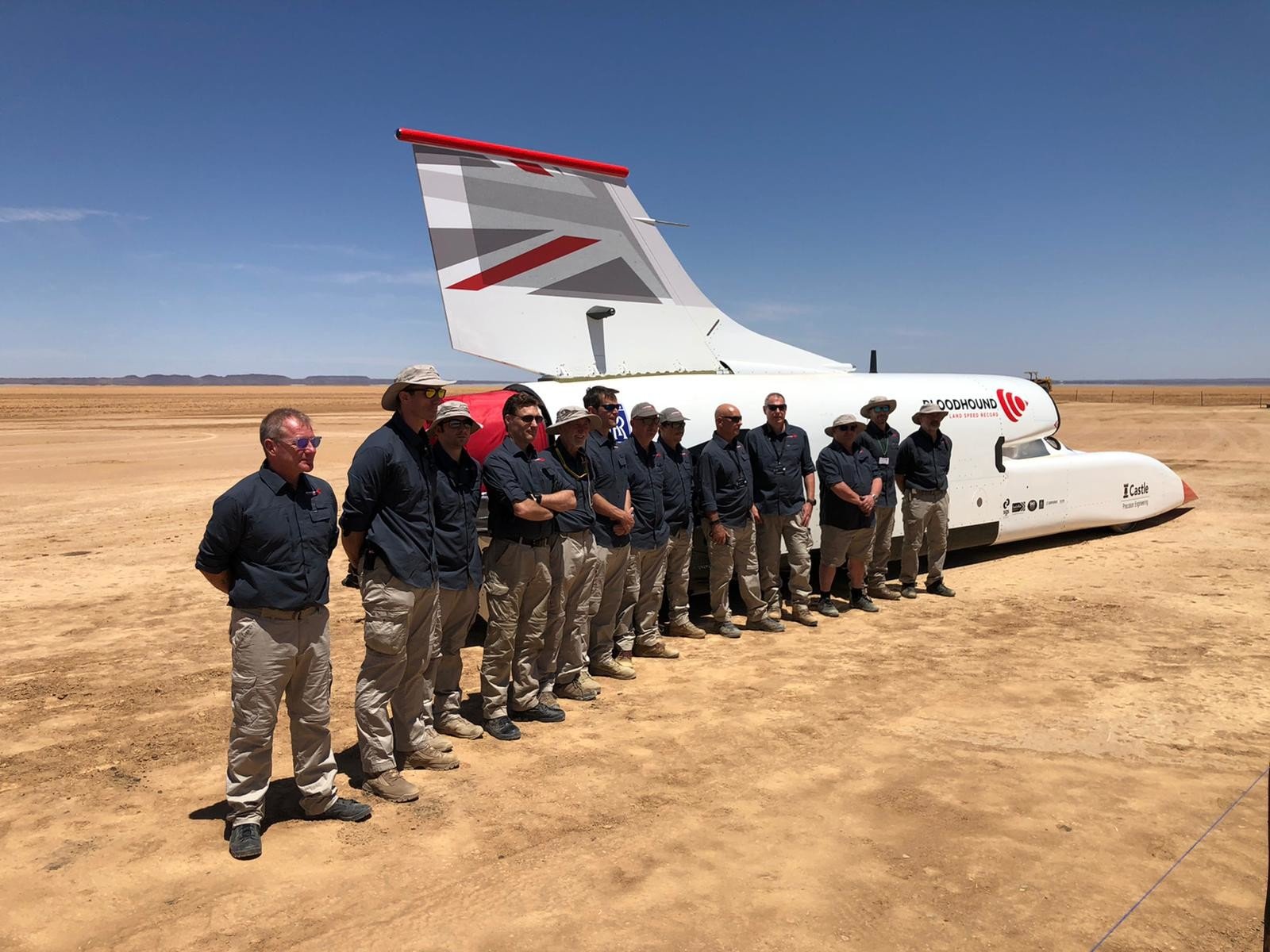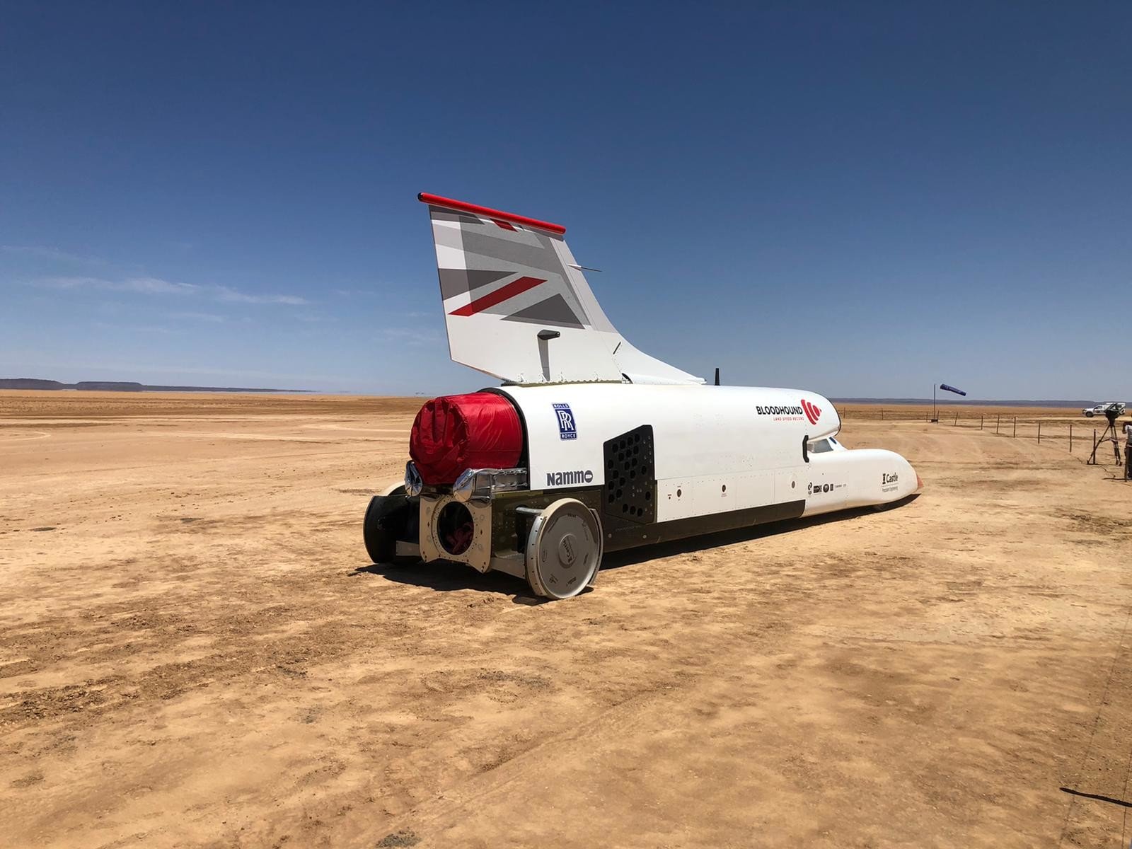 Este lunes, el equipo británico Bloodhound Land Speed Record publicó en su cuenta de Twitter una serie de fotografías del automóvil Bloodhound en el desierto Hakskeenpan, al noroeste de Sudáfrica, donde realizará pruebas de alta velocidad con miras a batir el récord mundial actual de 1.287 km/h, alcanzando los 1.609 km/h.