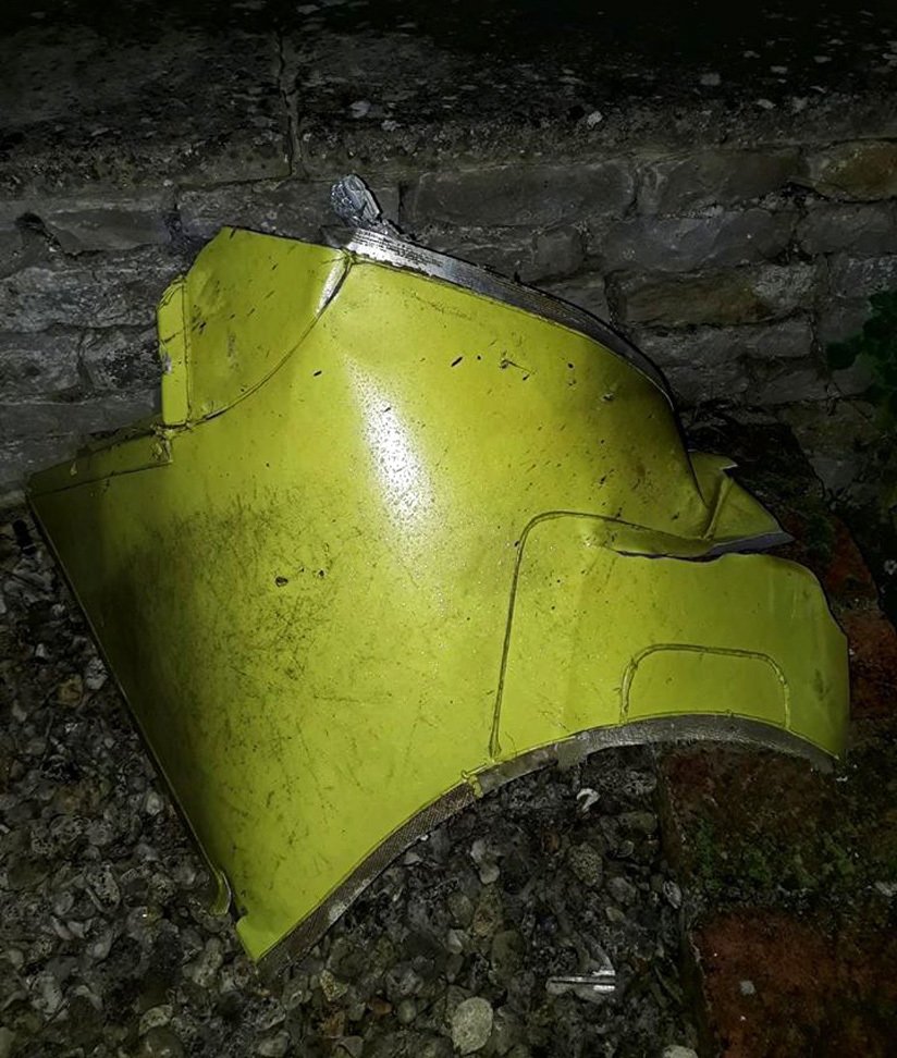 La mujer escuchó un fuerte sonido en su patio y dio aviso a las autoridades. El departamento de Policía de la localidad de Shipston compartió en su cuenta de Facebook detalles del incidente junto a una imagen de la pieza amarilla perteneciente a la aeronave militar.