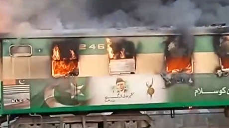 Las llamas envuelven un tren incendiado en Pakistán https://t.co/r4viu6ackYAl menos 73 personas han muerto en un incendio que se ha desatado en un tren cerca de la localidad de Rahim Yar Khan, en el sur de la provincia paquistaní de Punjab pic.twitter.com/Ib84yae0WR