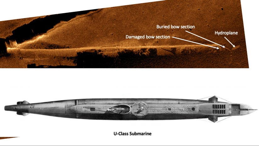 El sonar mostró sus típicos contornos a una profundidad de 130 metros, y posteriormente un vehículo no tripulado confirmó la presencia de un submarino de clase U, que carecía de un gran trozo de la proa.