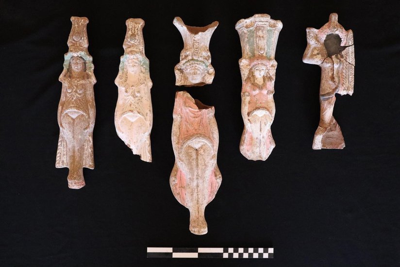 El lugar de enterramiento albergaba cinco estatuas de terracota de Isis-Afrodita, junto con otros enseres de arcilla cercanos a la puerta frontal de la catacumba. También se hallaron dos estatuas en forma de leones, hechas de piedra caliza y de aproximadamente 55 centímetros de altura.