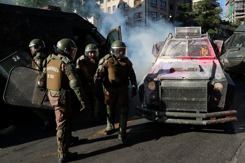 Las fuerzas de seguridad avanzaron con carros hidrantes y bombas lacrimógenas, para evitar que la protesta se extienda hacia barrios acaudalados de la capital chilena.