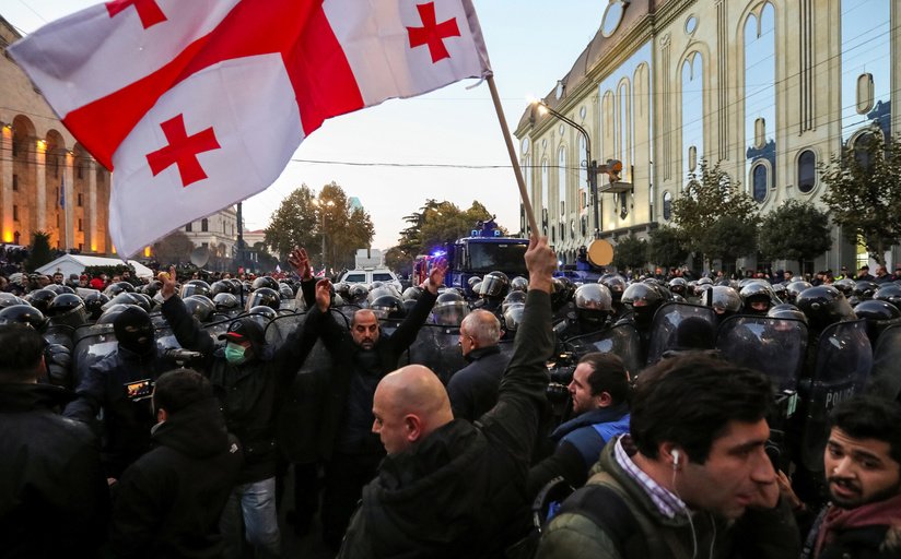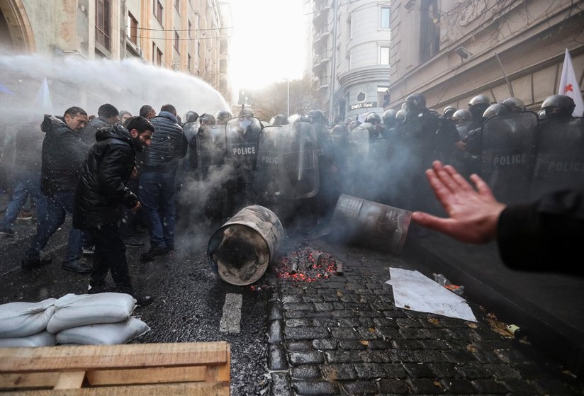 Las protestas empezaron el pasado 17 de noviembre, después de que los legisladores georgianos no aprobaran enmiendas a la Constitución de su país para pasar de un sistema mixto de elecciones parlamentarias a uno proporcional.