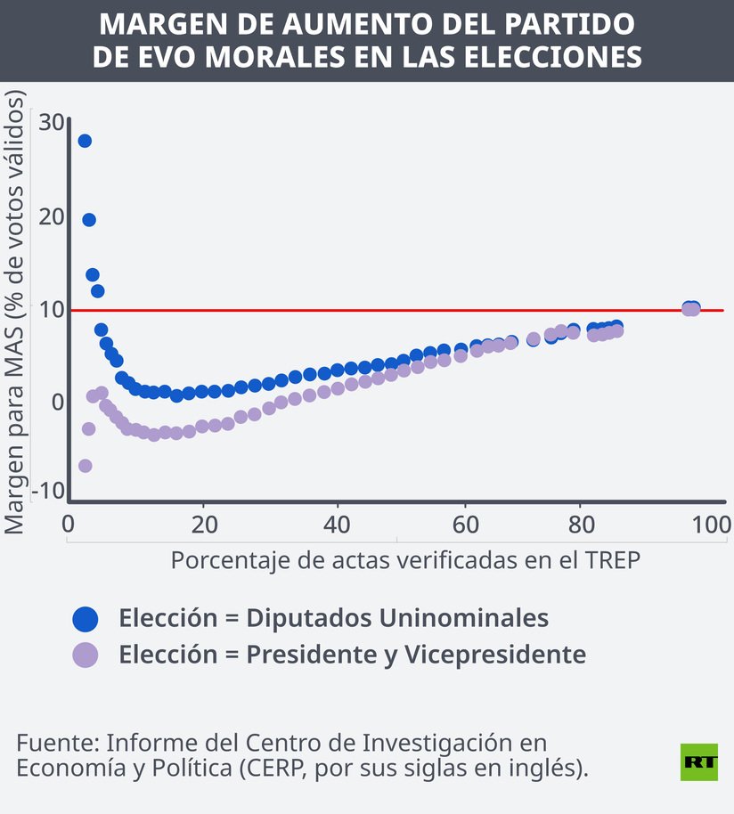 El análisis estadístico de los resultados electorales y de las actas de las elecciones generales del pasado 20 de octubre en Bolivia, recoge este documento de 18 páginas, "no muestra evidencias de irregularidades o fraude que haya afectado el resultado oficial que le dio al presidente Evo Morales una victoria en primera ronda".