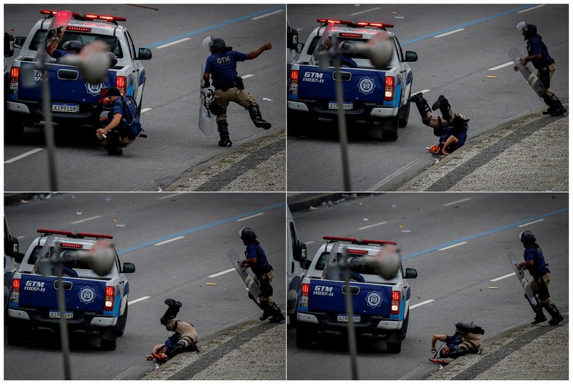 Sin embargo, el evento acabó en disturbios, que comenzaron unas horas después del inicio del desfile, cuando el autobús con los futbolistas abandonó la avenida Presidente Vargas y bajó por la rua de Santana, la cual estaba cerrada por barreras y solo permitía el paso del vehículo.