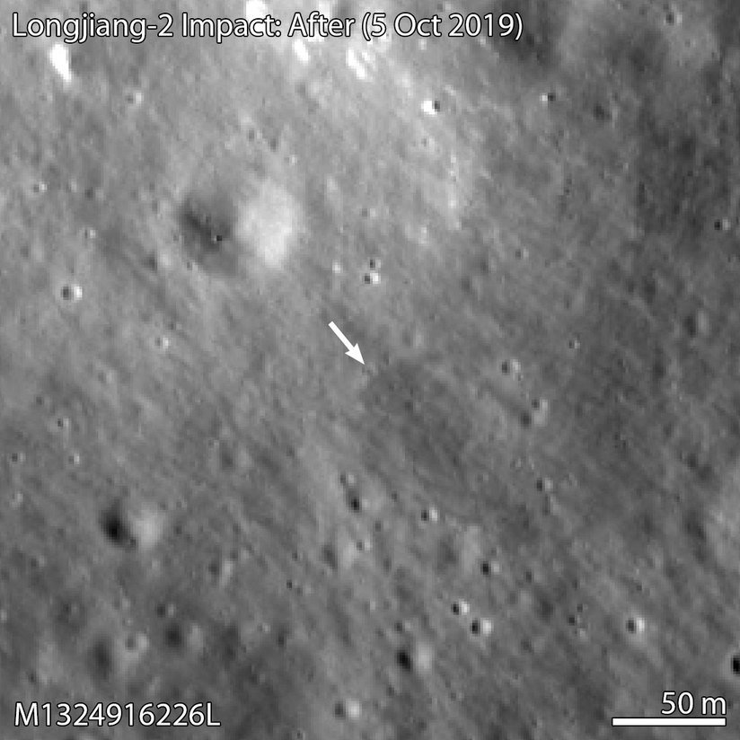 Científicos de la misión Lunar Reconnaissance Orbiter (LRO) de la NASA han logrado localizar, en la superficie de la cara oculta del satélite natural, el área aproximada donde el módulo chino Longjiang-2 se estrelló de forma deliberada el pasado 31 de julio, después de cumplir su misión orbital.