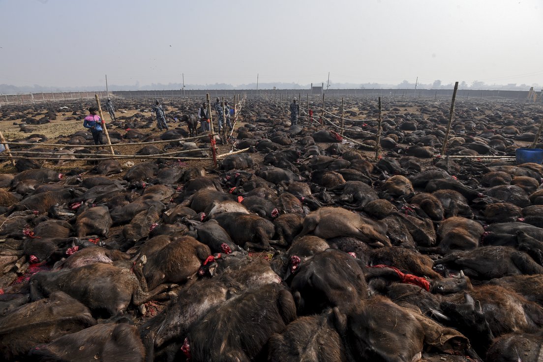 Cientos de miles de fieles llegaron a la remota localidad de Bariyarpur desde diversas regiones del país y de la vecina India para venerar a la diosa del poder, Gadhimai. El festival comenzó con la matanza ceremonial de una cabra, una rata, un pollo, un cerdo y una paloma.