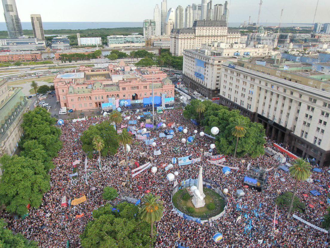 "Estamos decididos a poner a Argentina de pie", prometió Fernández desde el escenario montado en el frente de la residencia presidencial, de cara a una Plaza de Mayo colmada.