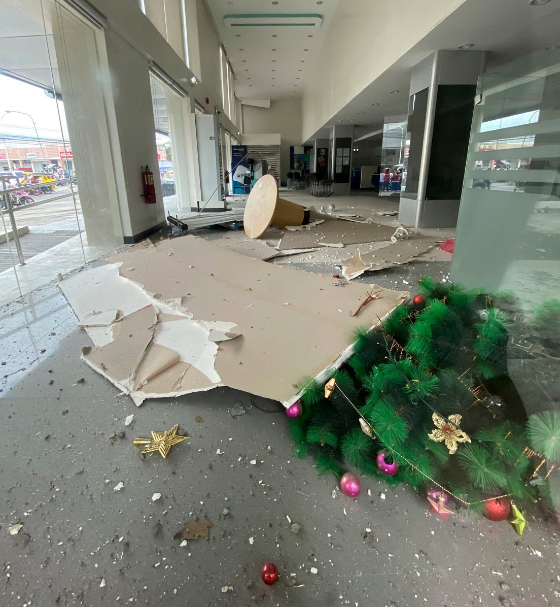 Hay instantáneas que evidencian graves daños en distintos edificios, donde se han venido abajo paredes y partes del techo, como ocurrió en un pabellón municipal de Magsaysay.