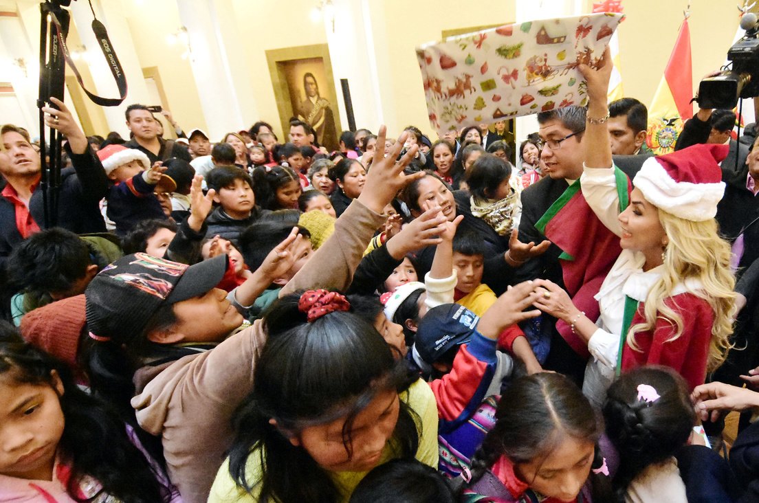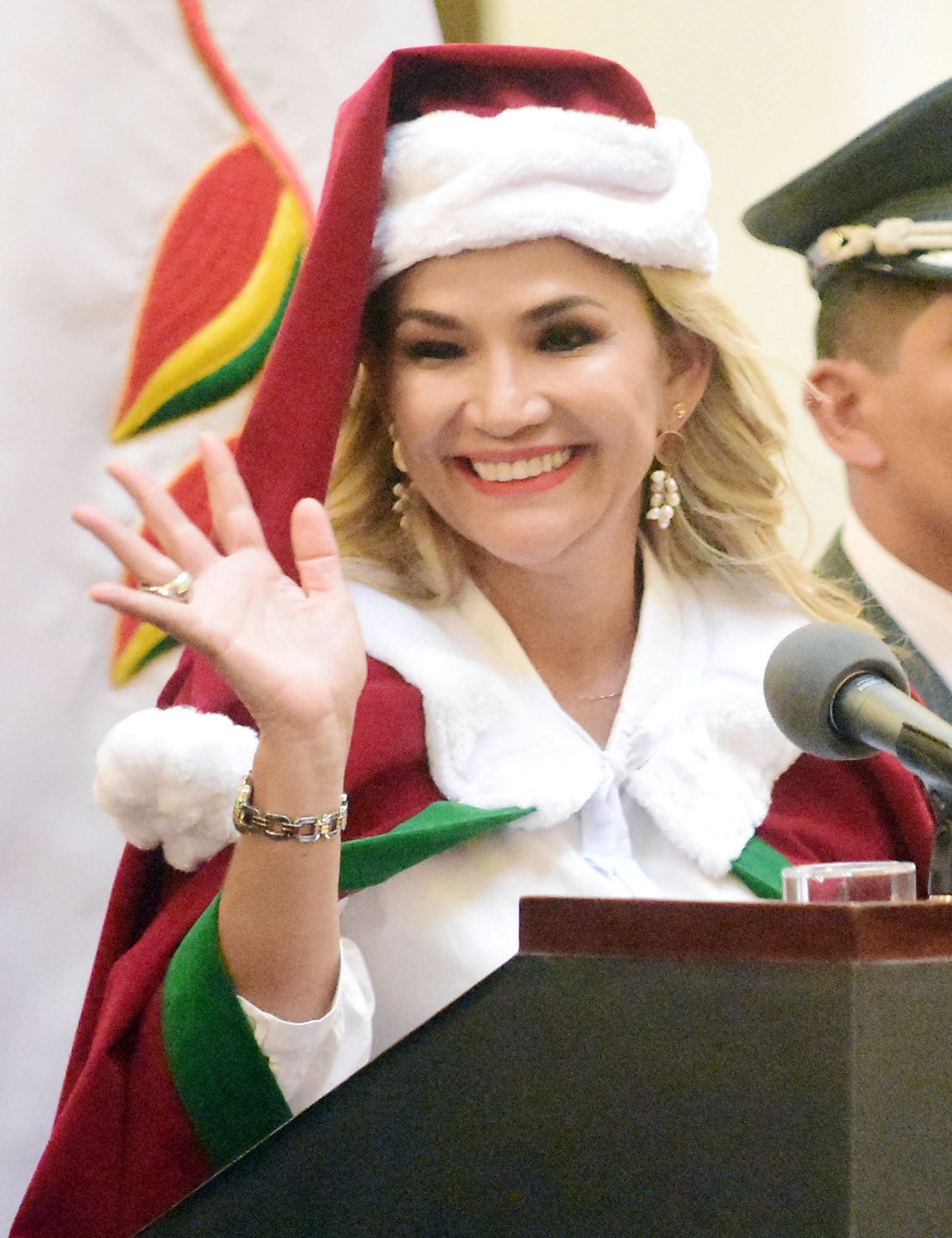 Las imágenes de la presidenta de facto boliviana, Jeanine Áñez, entregando el martes regalos a niños en el Palacio de Gobierno ataviada con una capa roja y un gorro de Papá Noel, generaron comentarios a favor y en contra de los usuarios de las redes sociales.