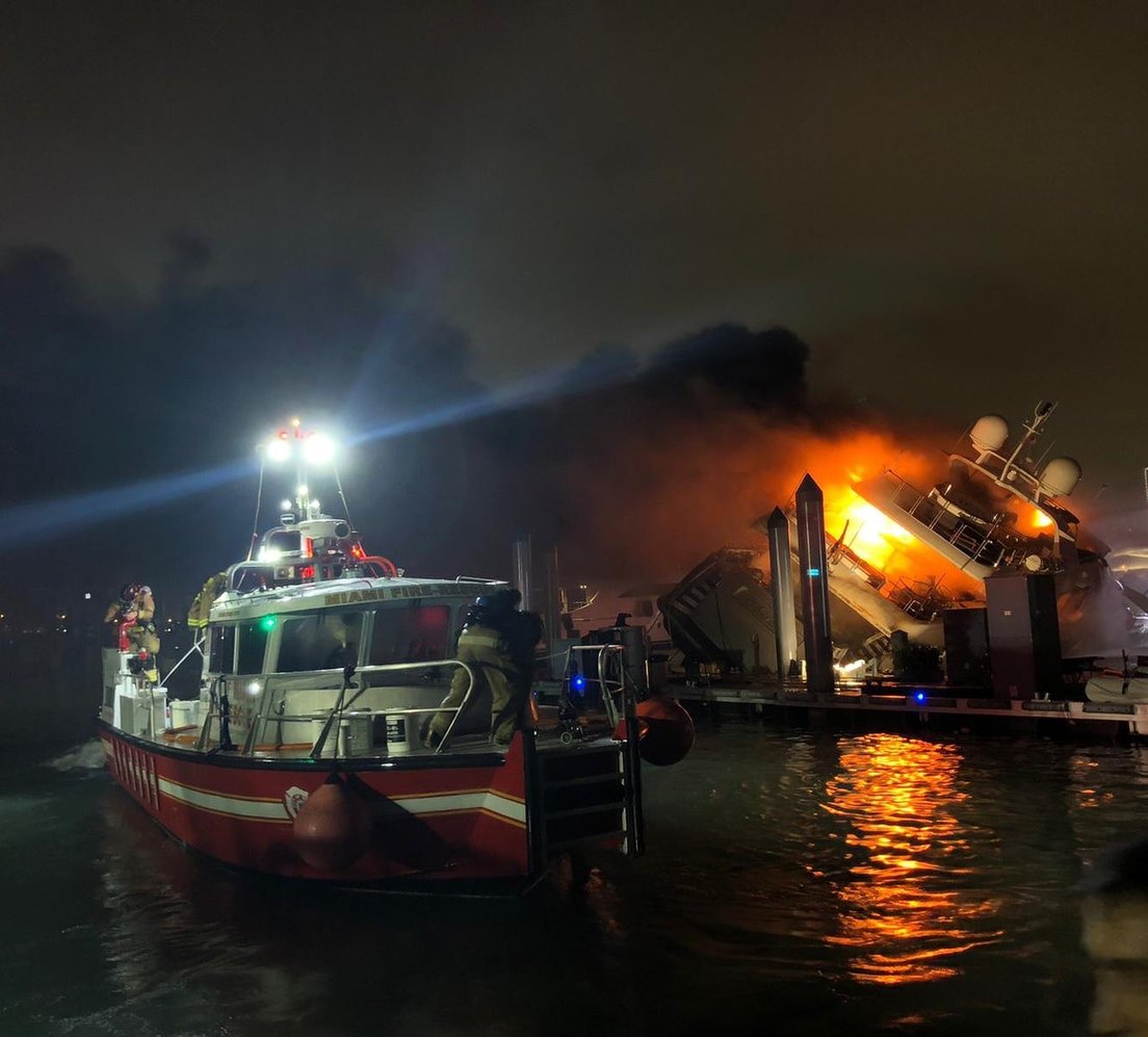 "Supieron que iba a ser un desafío importante para los equipos terrestres, por lo que respondieron los botes de bomberos", agregó. Las tareas de extinción duraron tres horas, en el transcurso de las cuales el yate se volcó.
