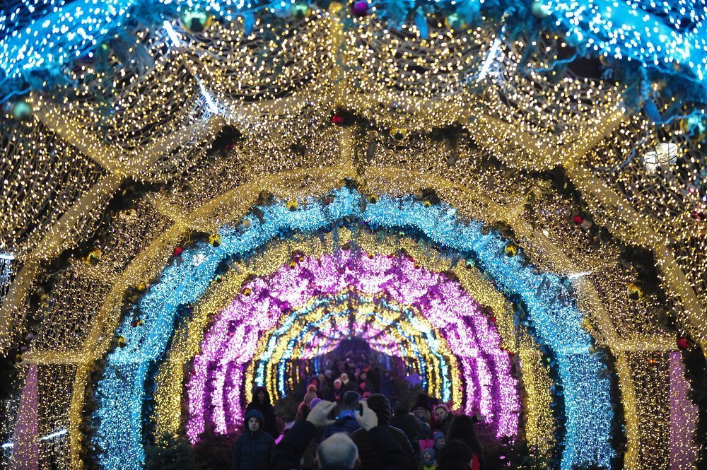 Unas cuatro mil luces y grandes pasillos cubiertos de iluminación alegran los locales e iluminan la noche con todo su esplendor a los visitantes de la Plaza Roja y sus inmediaciones.