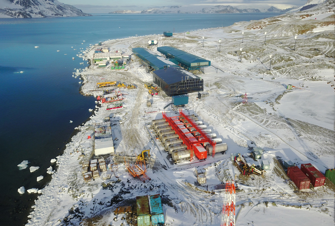 Se trata de un complejo de color verde botella y alargado, con una superficie de 4.500 metros cuadrados y elevado a más de tres metros de altura en la playa de Bahía de Almirantazgo, en la isla de Rey Jorge, en el archipiélago de las Shetland del Sur.