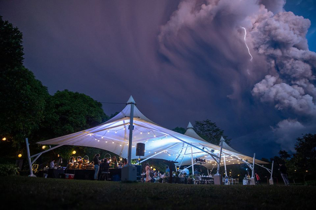 Cuando la ceremonia de los novios Chino Vaflor y Kat Bautista Palomar estaba por comenzar, ya era claro que el volcán cobraba vida: arrojaba vapor y cenizas a varios kilómetros de altura.