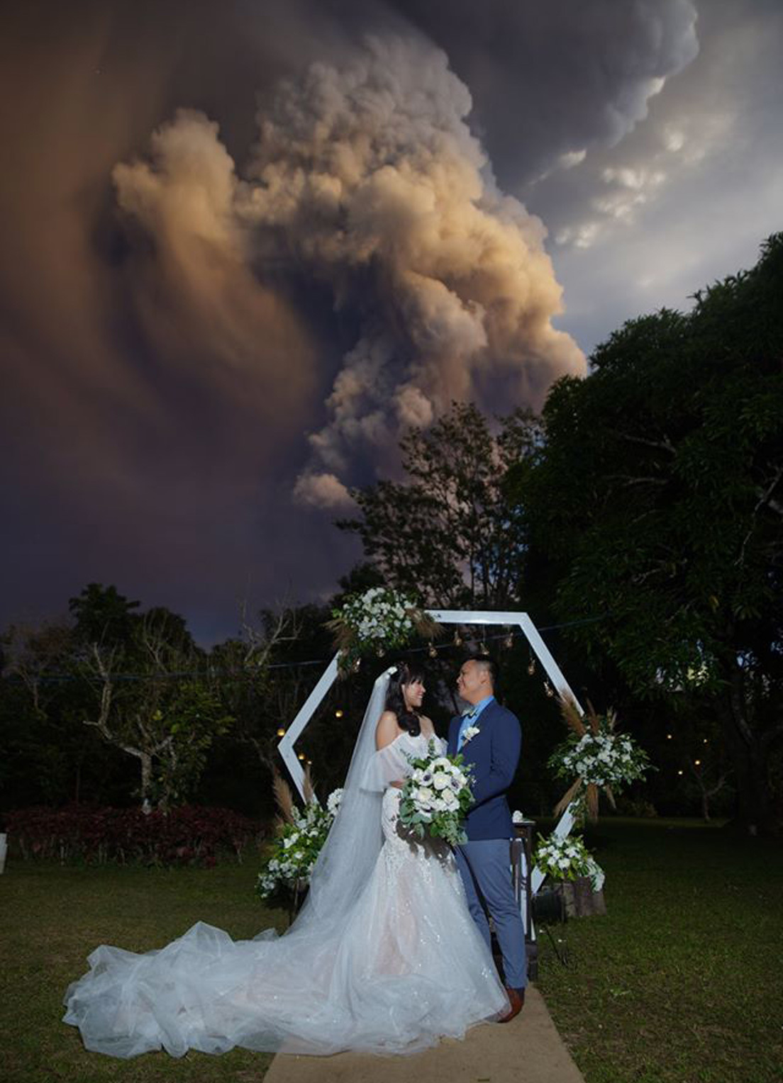 El fotógrafo Randolf Evan captó este domingo en Filipinas varias espectaculares imágenes de una boda, que se cumplió sin interrupciones a pesar de que a unos pocos kilómetros entraba en erupción el volcán Taal.