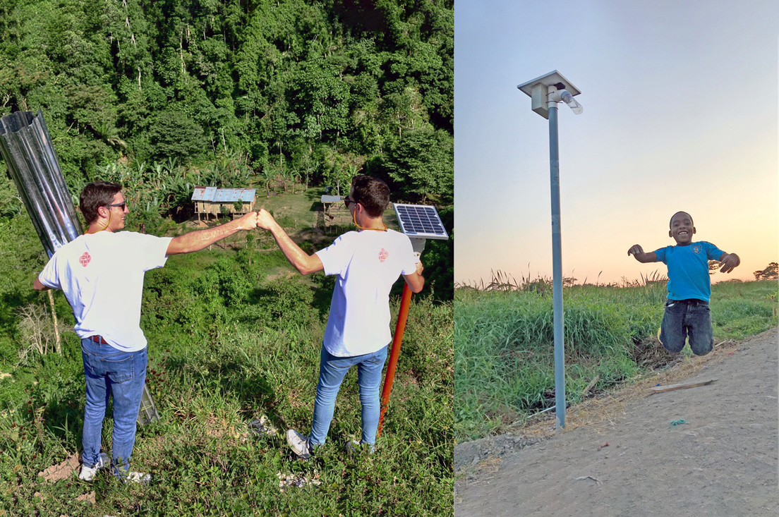 En los últimos meses, cuatro comunidades de diferentes provincias de Ecuador han visto llegar a un grupo de jóvenes de entre 21 y 25 años a sus asentamientos que no cuentan con electricidad, quienes, tras un proceso de socialización, dejan instalados postes que funcionan con energía solar, provocando un cambio en el lugar.