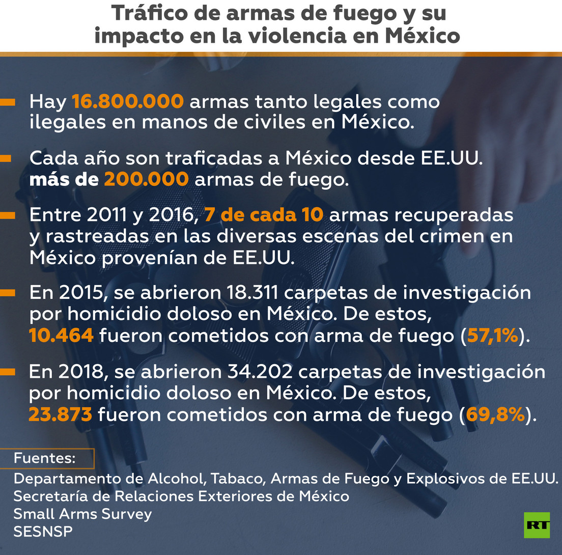 México ha pedido a la Administración de Donald Trump un mayor control del tráfico de armas, pues estiman que dada año entran ilegalmente más de 200.000 armas provenientes de EE.UU., y que terminan siendo usadas por las organizaciones criminales.