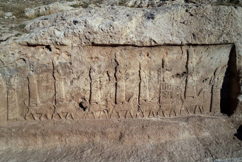 Según los expertos de la Universidad de Udine y la Dirección de Antigüedades de Duhok, esta construcción habría sido realizada cuando el territorio se encontraba bajo el gobierno del rey asirio Sargón II. Los murales exponen su figura seguido por una procesión de una serie de dioses sobre sus animales simbólicos.