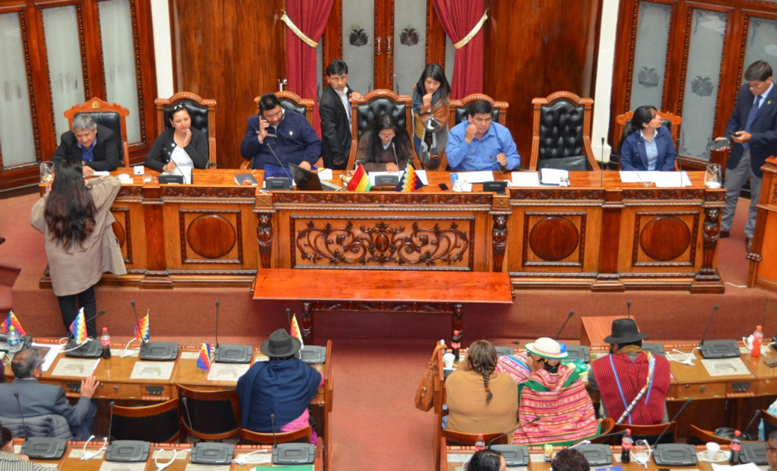 La sesión se llevó a cabo entre gritos y protestas de los legisladores. Pese a que el debate fue puesto en consideración por la presidenta del Senado, Eva Copa, del Movimiento al Socialismo (MAS), de Morales, alguno de sus correligionarios se oponían a aceptar la renuncia, argumentando que el mandatario fue víctima de un golpe de Estado.