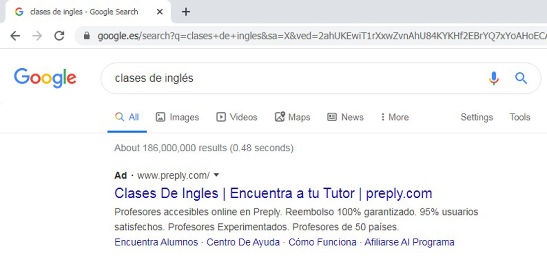 El buscador ahora muestra las publicidades con la palabra 'Ad' o 'Anuncio' en negrita y un enlace de aviso que se parece mucho a otros resultados de la lista. En el pasado, los avisos publicitarios eran más visibles, los enlaces tenían texto de un color diferente y hasta 2013 todo el mensaje se ubicaba en un rectángulo de color. Hasta ese año el texto del anuncio incluso aparecía subrayado para evitar confusiones con los enlaces de resultados de buscador.