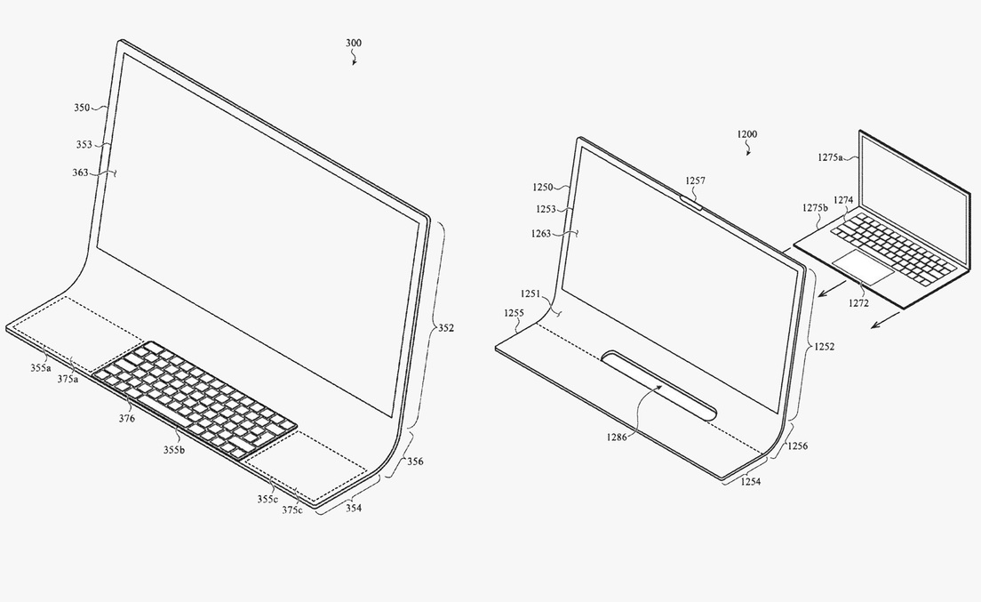 Las imágenes, que acompañan la solicitud de la patente, muestran que el gigante tecnológico de Cupertino planea también crear un dispositivo sin teclado, que, no obstante, permitirá al usuario conectarlo a un MacBook. Según sugiere The Verge, en este caso el monobloque asumiría el papel de la pantalla para el portátil y su teclado estaría disponible gracias a un hueco en su cuerpo.