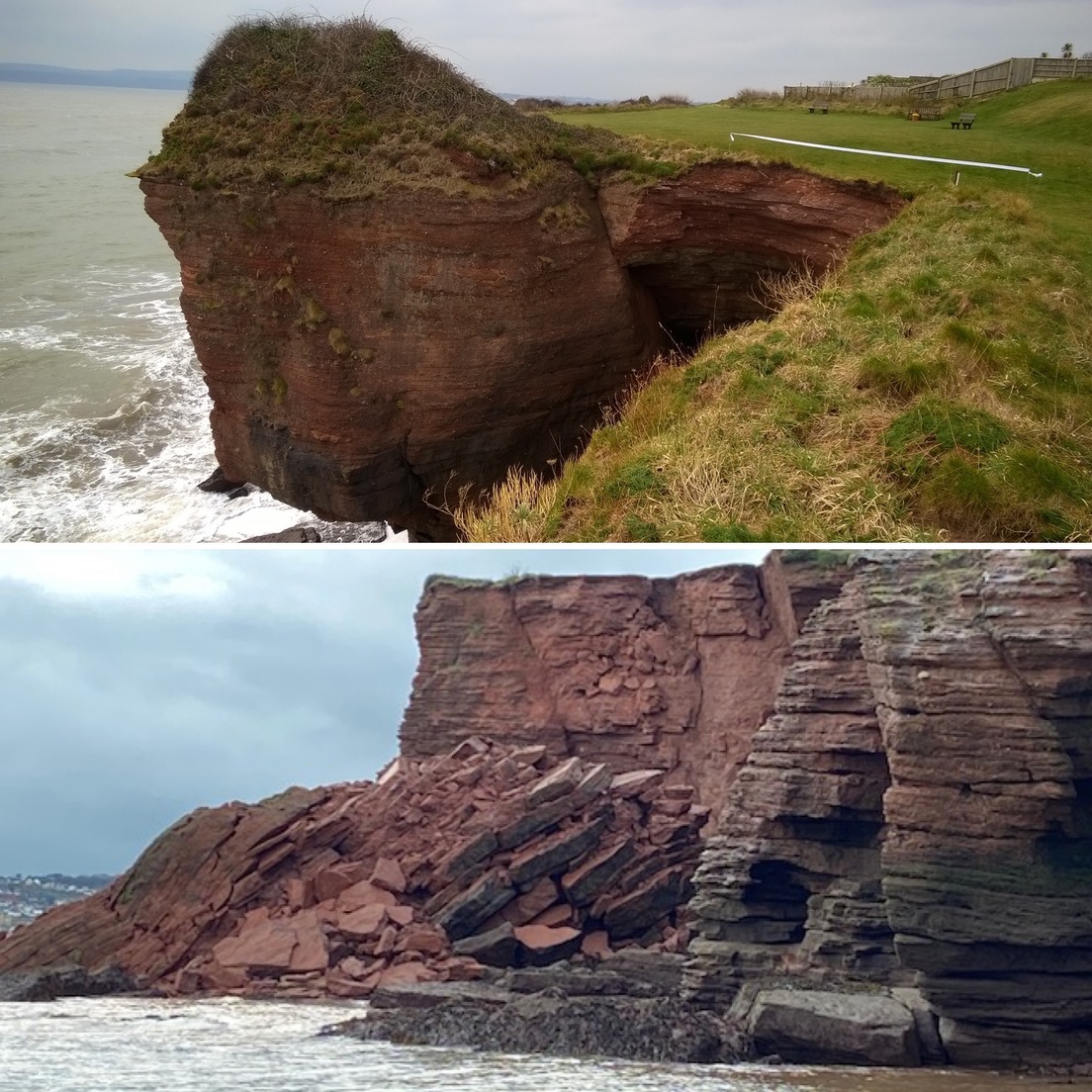 El derrumbe ocurrió el 27 de enero en la localidad de Torquay (Inglaterra). Imágenes aéreas de la zona afectada fueron publicadas dos días después tras evaluar el alcance del desprendimiento.