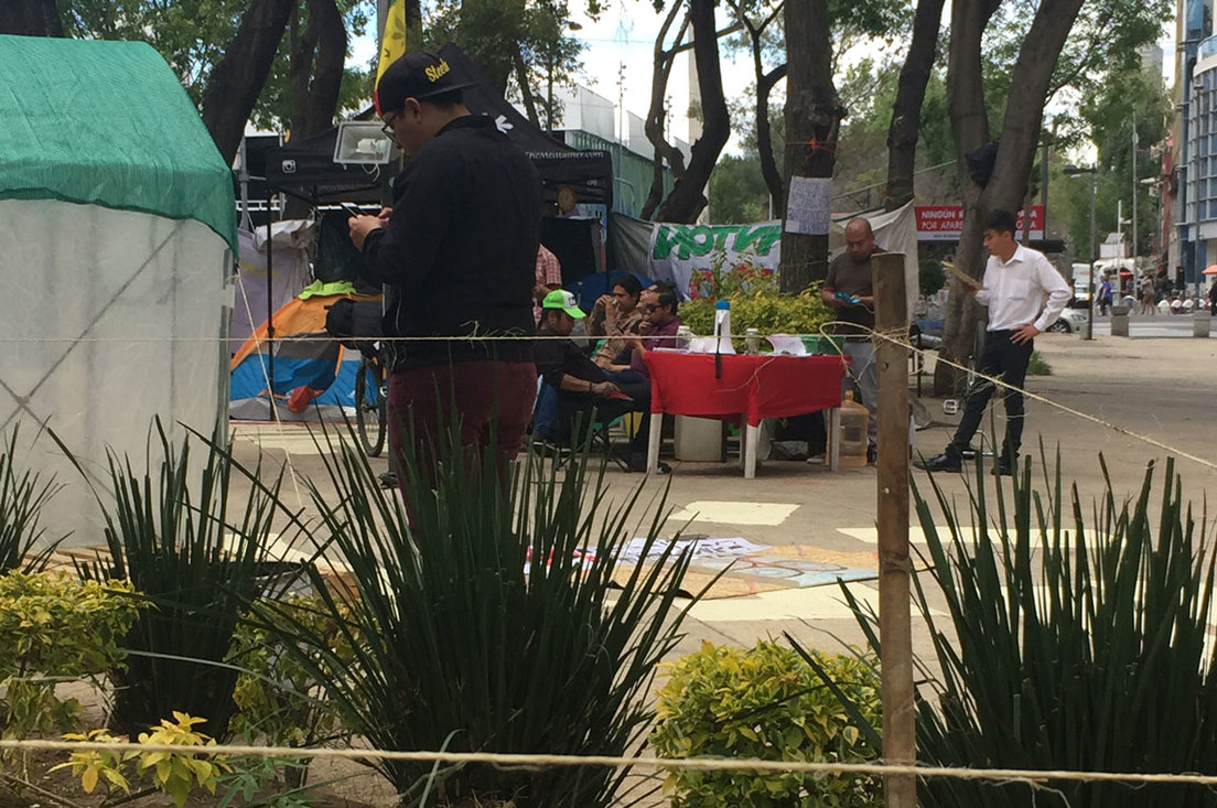 Son los activistas del Movimiento Cannábico Mexicano (MCM) que se instalaron el pasado fin de semana en la Plaza Luis Pasteur, justo enfrente de la Cámara Alta, con carpas, mantas, afiches y una carpeta en la que juntan firmas de apoyo a la postergada legalización.