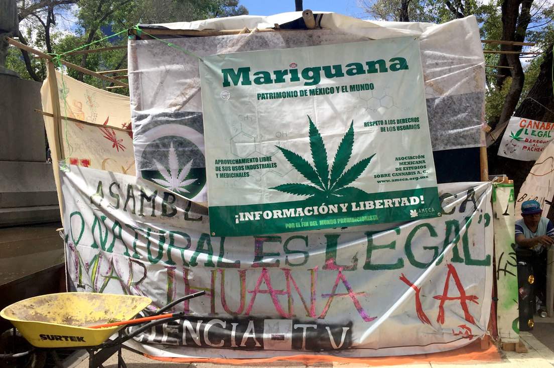 "Mariguana. Patrimonio de México y el mundo", presume una lona firmada por la Asociación Mexicana de Estudios sobre Cannabis que promueve el respeto a los derechos de los usuarios y el aprovechamiento libre de sus usos industriales y medicinales. "¡Información y libertad! Por el fin del mundo prohibicionista", es el lema generalizado.
