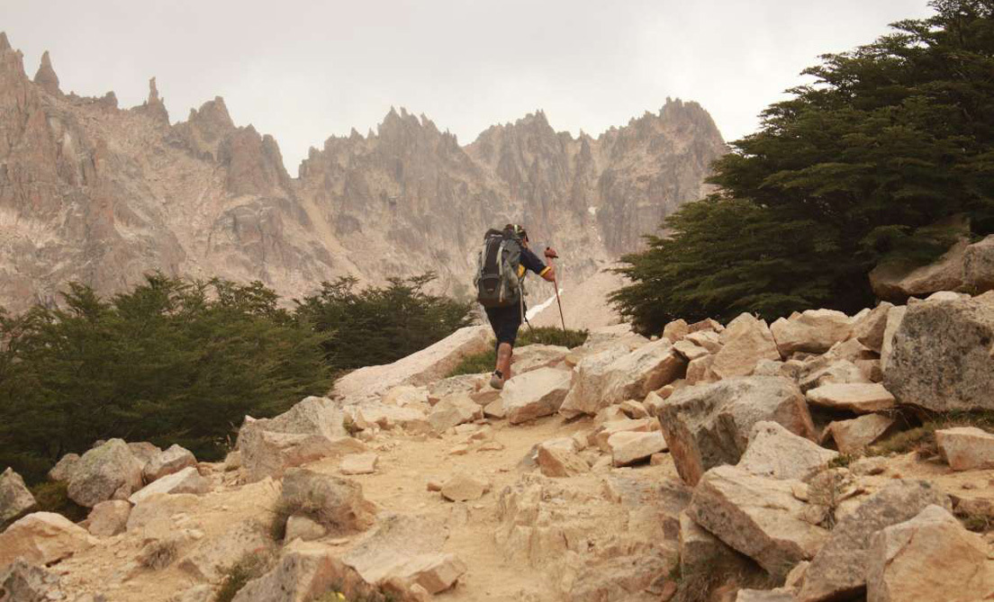A las 7:00 de la mañana y, tras dos horas de senderismo arduo, los jóvenes hacen su primera parada. Liberan sus hombros aprisionados por las mochilas y se detienen a contemplar el 'Frey', uno de los cerros más convocantes de la ciudad. "En invierno se cubre todo de nieve y el camino se vuelve más difícil, pero se disfruta más", afirman ambos. Pero la paz del plácido momento se estropea cuando Juan detecta algo en el piso que lo perturba: es el envoltorio de una barrita de cereal. "Crecimos al lado de esta montaña y nos molesta que el turista venga a arruinarla", dice mientras saca una bolsa plástica de residuos para juntar el papel. "Si me pagaran por cada vez que junto basura acá, no tendría que portear", bromea, y ambos vuelve al camino, mientras el sol amenaza en el horizonte.