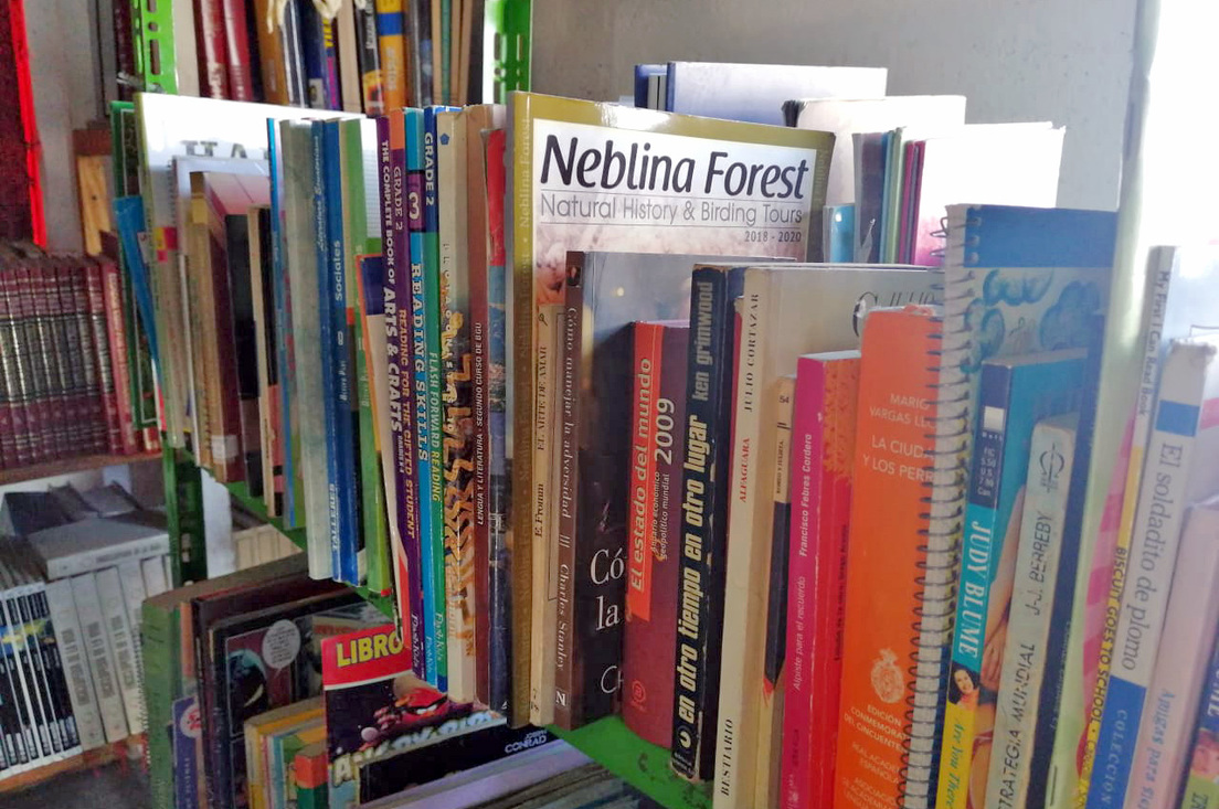 Los libros que entregan en estas escuelas dependen de la necesidad que tengan y la solicitud que hagan desde el recinto escolar. "Entregamos lo que ellos necesitan, porque la idea no es ir a dejar basura en la selva, la idea es que estos libros sirvan", menciona Velasco, detallando que, entre otros ejemplares, llevan enciclopedias, diccionarios, atlas, novelas, cuentos, fábulas y otro tipo de literatura, además de materiales didácticos.