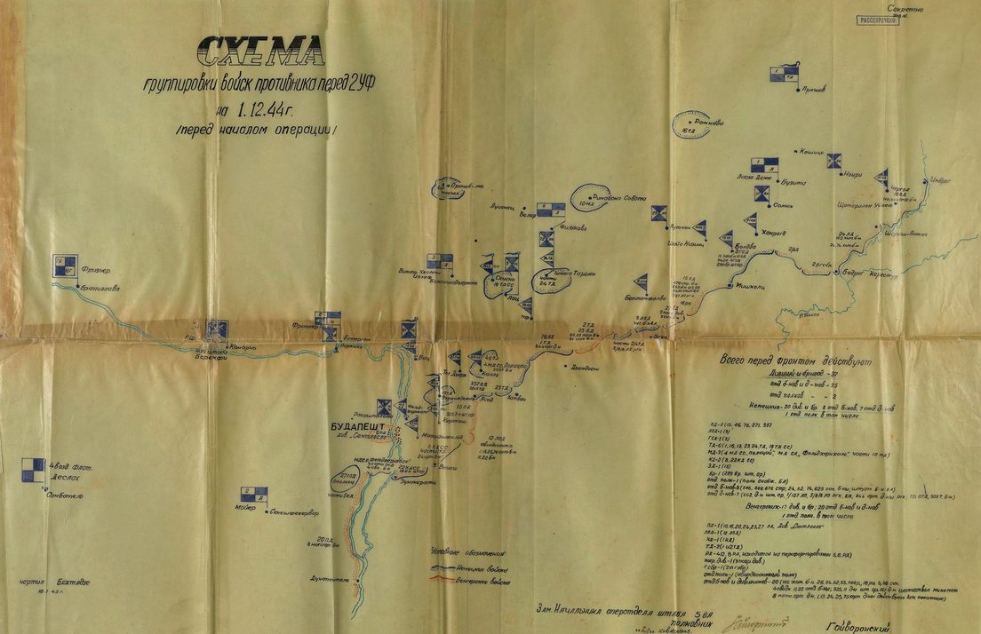 Entre varios documentos desclasificados únicos de los fondos del Archivo Central del Ministerio ruso, que están presentados en una nueva sección histórica del sitio web, hay un plan de la agrupación de las tropas nazis para el 1 de diciembre de 1944.