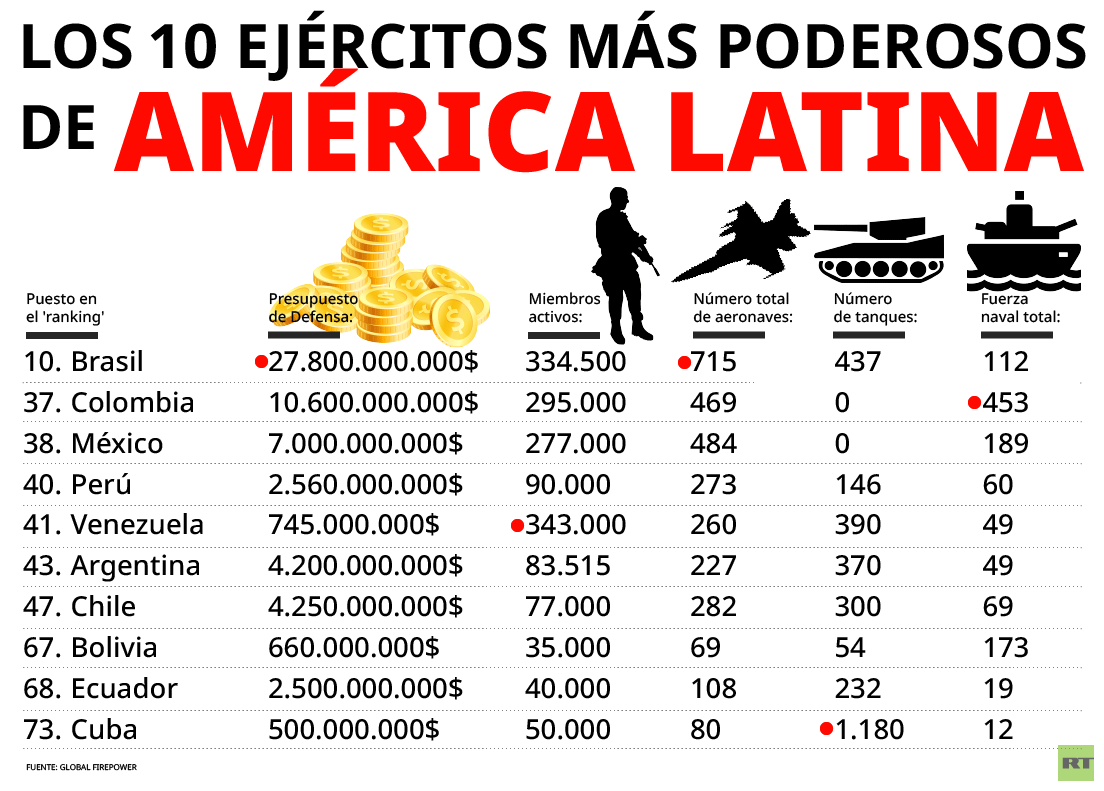 - Presupuesto de Defensa: 2.500.000.000 dólares