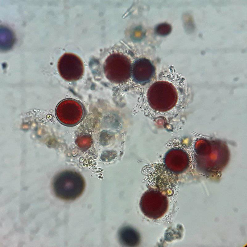 Aparte de la clorofila, las células de estas algas contienen una capa de caroteno rojo que protege a las algas de la radiación ultravioleta. Es esa capa la que provoca la aparición de "manchas rojas en la nieve, como si se tratara de mermelada de frambuesa".