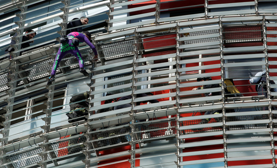 En esta escalada, Robert logró llegar al piso 26, de los 34 que tiene el rascacielos —que alcanza los 144 metros de altura—, puesto que los bomberos le pidieron que no continuara el ascenso y que entrara al edificio.