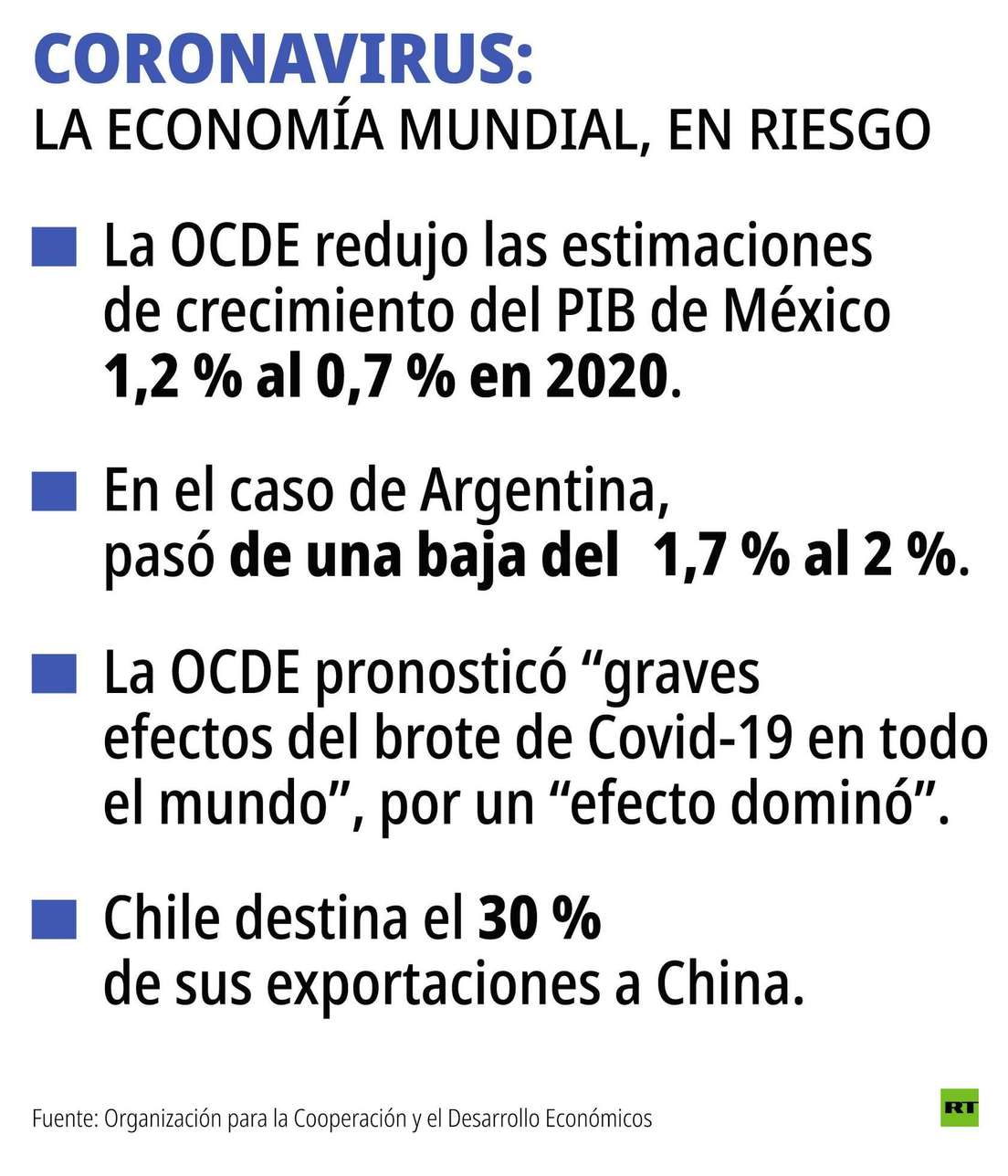 En efecto, la OCDE redujo las estimaciones del crecimiento del PIB de México del 1,2 % al 0,7 %, y, en el caso de Argentina, pasó de una baja del 1,7 % al 2 %. En tanto, Brasil, a pesar de la epidemia, mantrendrá, de acuerdo al informe, un crecimiento de 1,7 %.