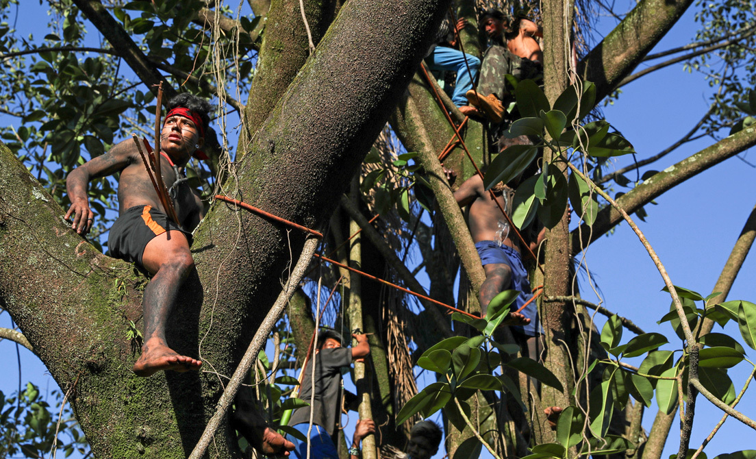 Este martes, un grupo de indígenas de la etnia mbyá guaraní, acompañado de miembros de movimientos sociales, intensificaron su protesta en un terreno cercano a su comunidad de Jaraguá, al norte de Sao Paulo, en Brasil, para evitar que una constructora retome el área para edificar.