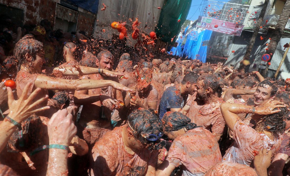 Otra de las estampas que saltan cada año a la prensa internacional es la de la Tomatina de Buñol, que se celebra el 26 de agosto en la localidad valenciana y donde miles de personas llevan a cabo una batalla a 'tomatazo' limpio.