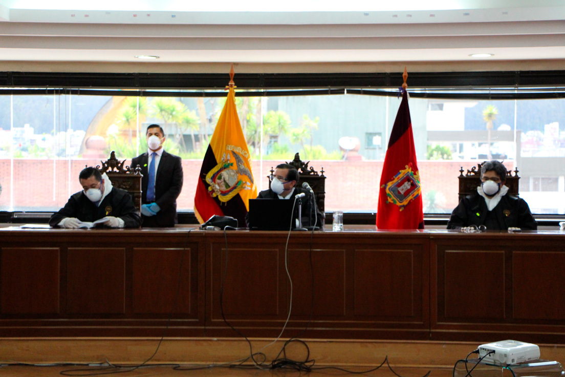 La sentencia se dictó dentro del proceso conocido como Caso Sobornos 2012-2016, en una sala de la Corte Nacional de Justicia en Quito, donde los jueces y asistentes portaban mascarillas y otros seguían la audiencia vía telemática desde otros pisos del edificio, puesto que rige en el país una emergencia nacional por la pandemia del coronavirus. La diligencia se realizó en la mañana, antes de que comenzara a regir el toque de queda a las 14:00 horas.