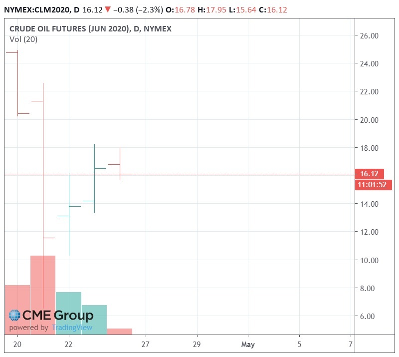- Los futuros para mayo de esta marca se desplomaron este 20 de abril el 305 %, hasta su mínimo histórico de -37,63 dólares