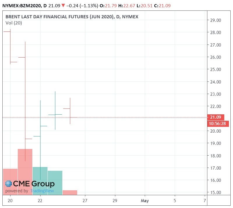 - El coste de los futuros para junio de WTI sufrió una importante caída este 21 de abril, situándose por debajo de 7 dólares.